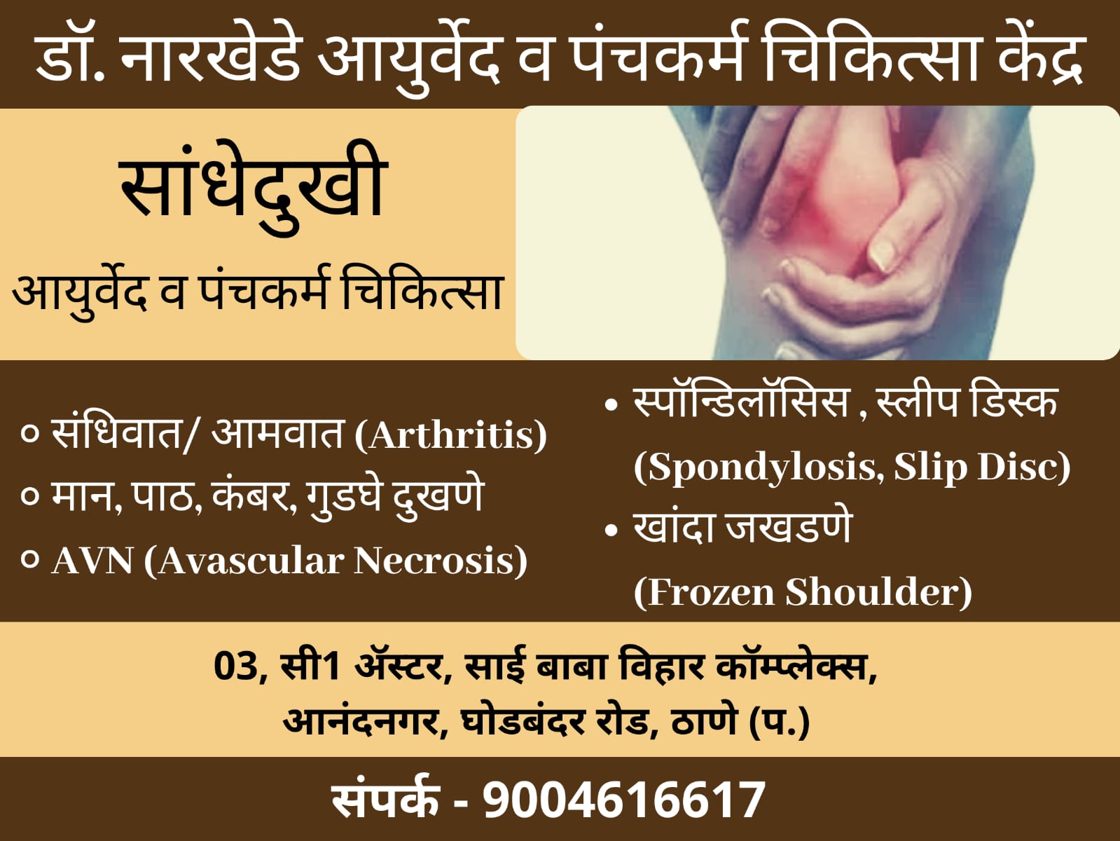 Arthritis ayurvedic treatment Thane Arthritis ayurvedic treatment Ghodbunder Road Arthritis ayurvedic treatment Majiwada Arthritis ayurvedic treatment Waghbil Arthritis ayurvedic treatment Hiranandani What is Arthritis? Arthritis is a chronic condition characterized by inflammation, pain, stiffness, and swelling in the joints. It can affect anyone, regardless of age, gender, or ethnicity. Types of Arthritis: 1. Osteoarthritis (OA): Wear and tear on the joints, causing cartilage loss and bone-on-bone contact. 2. Rheumatoid Arthritis (RA): Autoimmune disease where the body attacks the lining of the joints (synovium). 3. Gout: Sudden, severe joint pain due to uric acid buildup. Symptoms: - Joint pain, stiffness, and swelling - Reduced mobility and flexibility - Warmth, redness, and tenderness in affected joints - Fatigue, fever, and loss of appetite (in some cases) Causes and Risk Factors:- - Age, genetics, and family history - Obesity, lack of exercise, and poor diet - Infections, injuries, and autoimmune disorders - Certain medications and underlying medical conditions Ayurvedic treatment: While talking about arthritis treatment, patients who have a Vata-related disease must have some patience. The ayurvedic therapy gives quick symptomatic relief for arthritis. But to cure it permanently, the duration of treatment may increase. In today’s era, Ayurveda Panchakarma therapy is the only successful remedy to treat arthritis permanently. #arthritis, #spondylosis, #slipdisc, #BackPain, #Neckpain, #kneepain, #frozenshoulder #avascularnecrosis #ayurvedictreatment #panchakarma #ayurvedicmedicine #oilmassage #steambath #janubasti #katibasti #ayurveda #ayurvedicclinic #ayurvedicdoctor