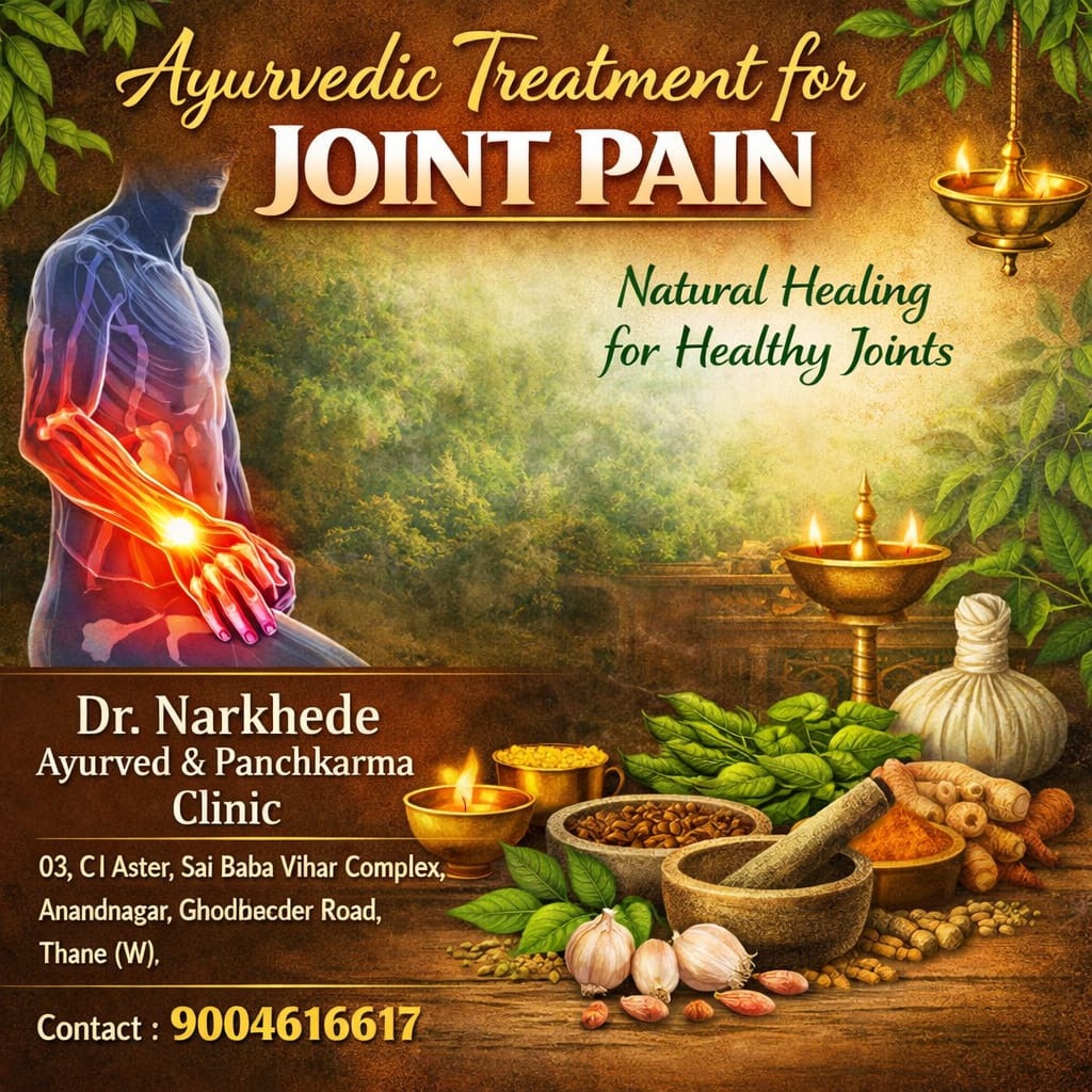 **Ayurveda offers holistic, root-cause solutions for joint pain by balancing doshas, detoxifying the body, and using herbs, therapies, and lifestyle changes. In Thane and across India, Ayurvedic clinics provide treatments like Panchakarma, Abhyanga, and Janu Basti that help reduce inflammation, improve mobility, and prevent long-term degeneration. 🌿 Ayurvedic View on Joint Pain - Cause: Imbalance of Vata dosha (dryness, stiffness) or accumulation of Ama (toxins) in joints. - Types addressed: - Sandhivata (Osteoarthritis) – degenerative pain, stiffness. - Amavata (Rheumatoid Arthritis) – autoimmune inflammation with swelling. - Vatasonita (Gout) – uric acid buildup causing sharp pain. 🔑 Ayurvedic Treatments External Therapies - Abhyanga (Oil Massage): Warm medicated oils like Mahanarayan Taila to reduce stiffness. - Janu Basti/Kati Basti: Oil-retention therapy for knees or lower back. - Pinda Sweda (Bolus Massage): Heated herbal poultices for pain relief. - Leech Therapy: For inflammatory arthritis, removes vitiated blood. Internal Therapies - Panchakarma Detox: Eliminates toxins and balances doshas. - Basti (medicated enema) – best for Vata-related pain. - Virechana (purgation) – reduces Pitta-driven inflammation. - Rasayana (Rejuvenation): Herbs to rebuild tissues and prevent recurrence. 🌱 Herbal Remedies - Ashwagandha: Strengthens muscles, reduces inflammation. - Turmeric (Curcumin): Potent anti-inflammatory. - Shallaki (Boswellia): Preserves cartilage, reduces swelling. - Guggulu: Detoxifies joints, supports regeneration. - Nirgundi & Ginger: Relieve pain and improve circulation. 🍴 Diet & Lifestyle - Foods to include: Warm cooked meals, turmeric, ginger, sesame oil, ghee, bone broth, papaya, cherries, nuts, seeds. - Foods to avoid: Cold/raw foods, nightshades (tomatoes, potatoes, brinjal), processed items. - Habits: Daily oil massage, gentle yoga/walking, regular sleep, meditation for stress reduction. ⚠️ Risks & Considerations - Best suited for: Early to moderate joint pain, arthritis, or gout. - Limitations: Severe degeneration may only benefit from pain management, not reversal. - Professional guidance: Always consult a qualified Ayurvedic physician for personalized treatment. 📌 Conclusion Ayurveda treats joint pain not just as a symptom but as a systemic imbalance. By combining detox therapies, herbal remedies, diet, and lifestyle adjustments, it offers **long-term relief and improved mobility without harmful side effects**. For residents of Thane, Ayurvedic clinics provide accessible care, helping patients manage pain naturally and avoid dependency on painkillers or invasive surgery.