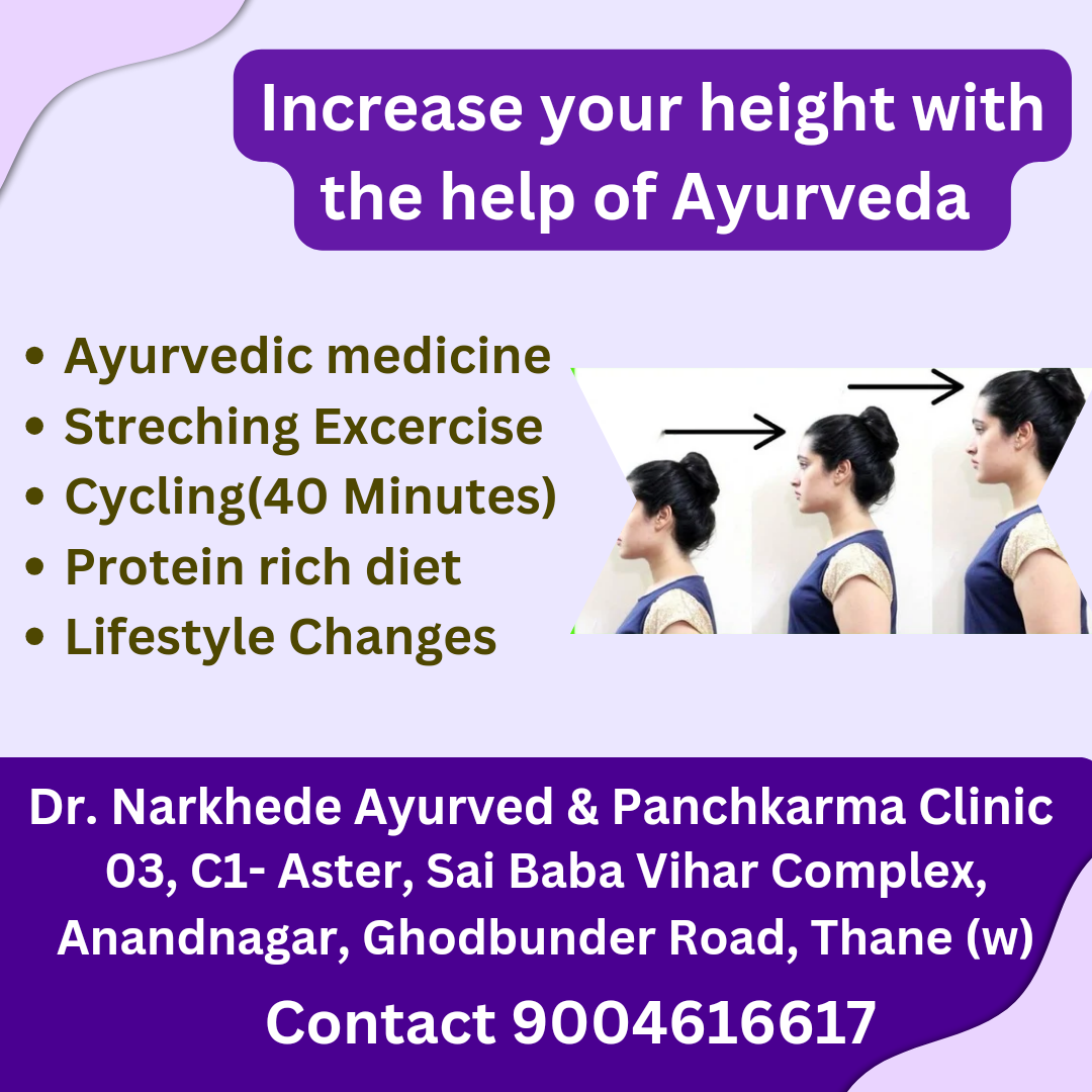 Height increase treatment Hiranandani height increase treatment Ghodbunder Road Height increase treatment Anandnagar Height increase treatment Kasarvadavali Height increase treatment Majiwada Ayurvedic tips for height growth: 1. Regular exercise: Practice yoga, swimming, cycling or other exercises that promote growth. 2. Balanced diet: Eat nutrient-rich foods like dairy, nuts, leafy greens, and whole grains. 3. Proper sleep: Get 7-8 hours of sleep to help growth hormones function. 4. Stress management: Manage stress through meditation, deep breathing, or other relaxation techniques. 5. Herbal remedies: - Ashwagandha: Boosts growth hormone. - Haritaki: Enhances bone growth. - Pippali: Stimulates growth hormones. 6. Panchakarma: Detoxification and rejuvenation program to enhance growth. 7. Posture correction: Maintain good posture to maximize height. 8. Avoid growth-stunting factors: Limit junk food, sugary drinks, and excessive screen time. Remember, height growth is most effective during childhood and adolescence. Consult an Ayurvedic practitioner for personalized guidance and treatment.e #heightincrease #heightproblems #heightmedicine #ayurvedictreatment #ayurvedicmedicines #ayurveda #ayurvedicclinicnearme #ayurvedicdoctornearme #ayurvedicclinic #ayurvedicdoctor #ghodbunderroad #viralpost #viral #thane #instaayurveda #instahealth