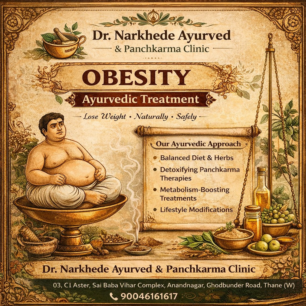 Dr Narkhede Ayurved & Panchkarm Clinic Flat no 03,Ground Floor, C1 Aster, Sai Baba Vihar Complex, Ghodbunder Rd, near Muchhala Polytechnic College, Anand Nagar, Thane, Maharashtra 400615 +918048034530 drnarkhedeayurvedclinic@gmail.com