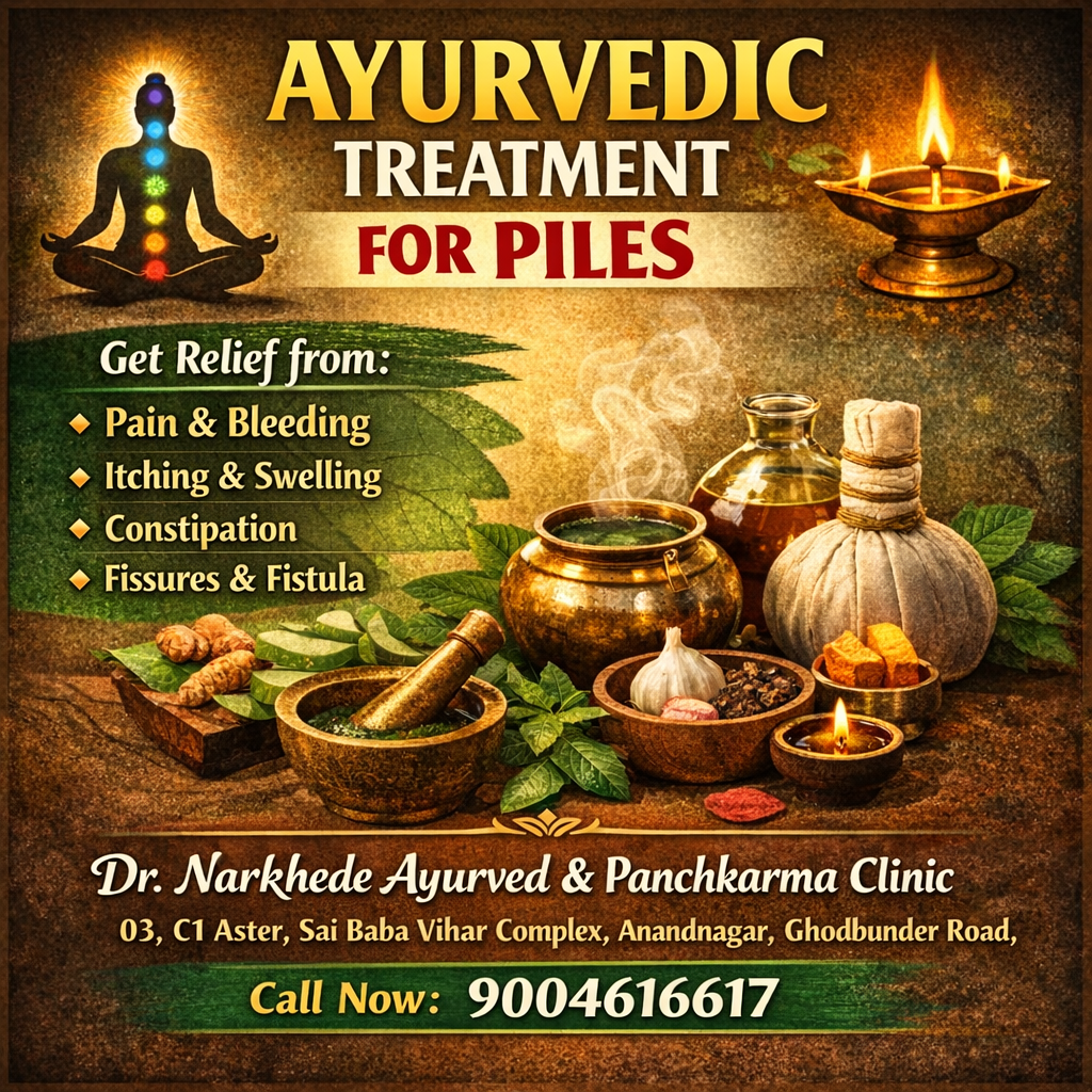 Dr Narkhede Ayurved & Panchkarm Clinic Flat no 03,Ground Floor, C1 Aster, Sai Baba Vihar Complex, Ghodbunder Rd, near Muchhala Polytechnic College, Anand Nagar, Thane, Maharashtra 400615 +918048034530 drnarkhedeayurvedclinic@gmail.com