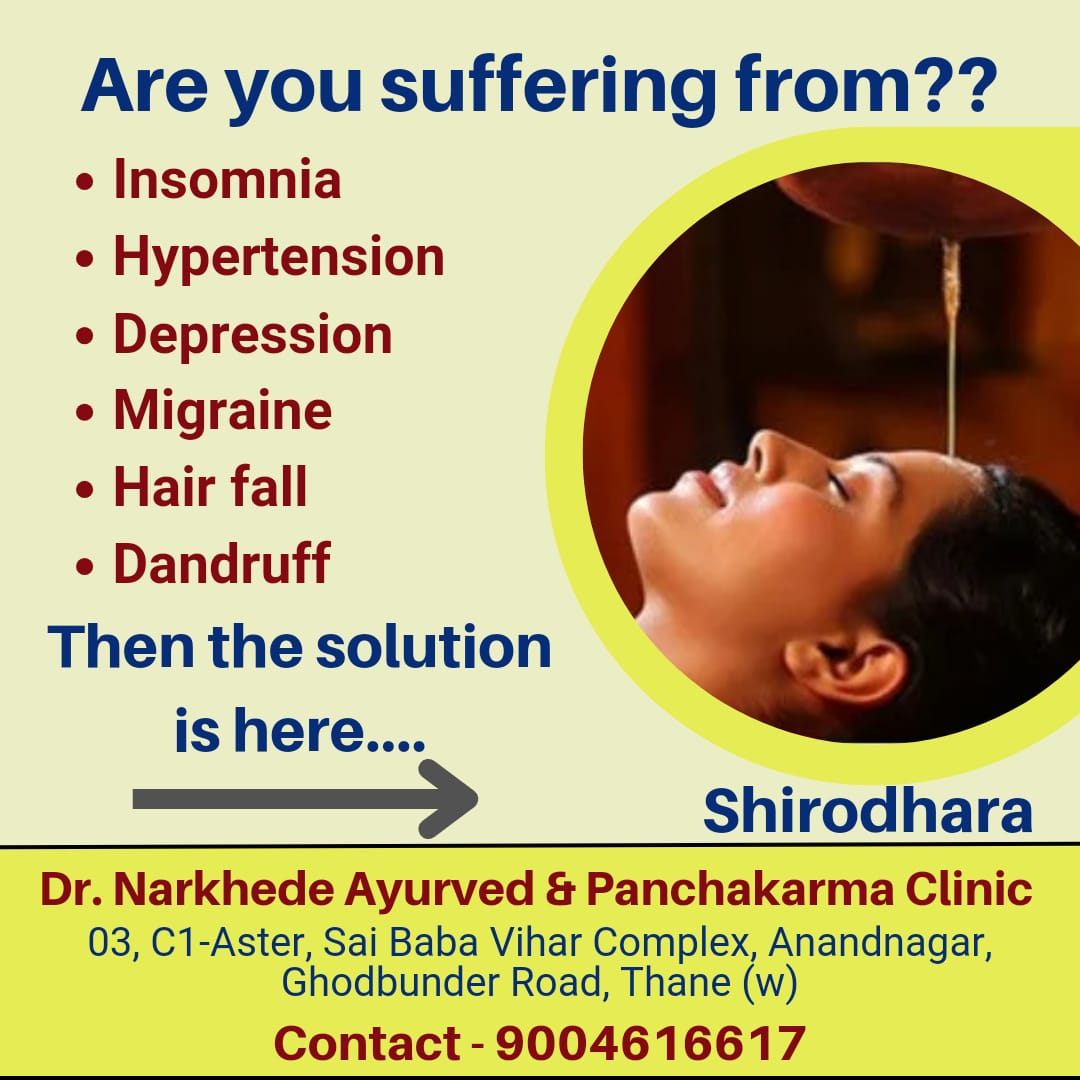 Shirodhara treatment Shirodhara treatment in Thane Shirodhara treatment in Hiranandani Shirodhara treatment in Kasarvadavali Shirodhara treatment in Majiwada Shirodhara - This procedure involves certain liquids like oil, butter milk, ghrita, etc., poured over the scalp focussing on the region between the eyebrows for a period of 30 to 50 minutes. _It induces a relaxed state of awareness resulting in a dynamic psychosomatic balance. A total feeling of wellness, mental calmness & clarity, and comprehension is experienced._ *It gives excellent relief in conditions like migraine & tension headaches, overthinking, anxiety, sleep issues, cognitive issues, hypertension, & skin diseases, & GI disturbances.* It works on the Stapani Marma, which has the superior sagittal sinus & the cavernous sinus, the venous reservoir of the brain. With the temperature of the liquid used, vasodilation is effected thereby *improving the blood circulation in the brain, thus enhancing functions of the hypothalamus, pituitary glands, pineal body, and the limbic system.* The streaming of oil on the Sthapani Marma with closed eyes creates a focus on the Agnya Chakra leading to psychosomatic harmony. Talk to our Doctor to know how Shirodhara will help you in your mental & physical issues you are facing. #shirodhara #shirodharatreatment #shirodharatherapy #panchakarma #stressrelief #anxietyrelief #depressive #insomniarelief #hypertension #parkinsonsdisease #panchkarma #ayurvedpanchkarma #ayurveda #ayurvedicmedicine #ayurvedictreatment #ayurvedicclinicnearme #ayurvedicclinic #ayurvedicdoctor #ayurvedichealing #drnarkhedeayurvedclinic #drsagarnarkhede