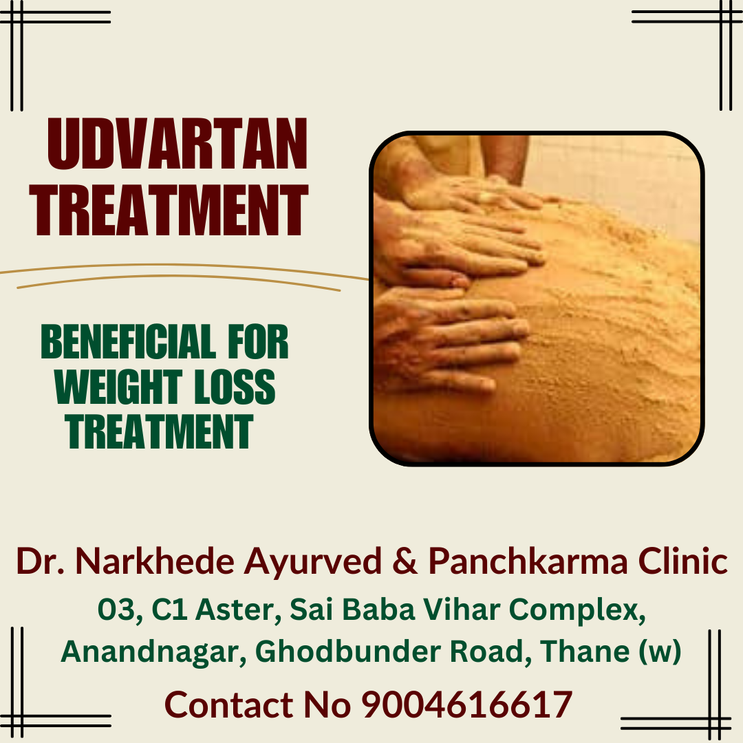 Udvartan treatment Thane Udvartan treatment Ghodbunder Road Udvartan treatment Anandangar Udvartan treatment kasarvadavali Udvartan treatment Waghbil Udvartan treatment is a traditional Ayurvedic therapy that involves a specialized massage technique using herbal powders or pastes. The treatment is designed to help reduce excess fat, improve circulation, and tone the muscles. Benefits of Udvartan treatment: - Reduces body fat and cellulite - Improves circulation and detoxification - Tones and strengthens muscles - Enhances skin texture and glow - Relieves stress and anxiety - Improves overall physical and mental well-being The treatment typically involves a series of strokes and manipulations using herbal powders or pastes, followed by a warm water bath. It is usually recommended as part of a comprehensive weight loss program or as a standalone treatment for overall health and wellness. Note: Udvartan treatment should only be performed by a qualified Ayurvedic practitioner or therapist. #udvartana #weightlosstreatment #panchkarma #reducefat #improvecirculation #detoxification #tonemuscles #strengthenmuscles #SkinTexture #skinglow #relieveanxiety #StressRelief #physicalhealth #mentalhealth #AyurvedicTreatment #AyurvedicDoctor #ayurvedicmedicine #ayurvedicclinic #healthpost #viralpost
